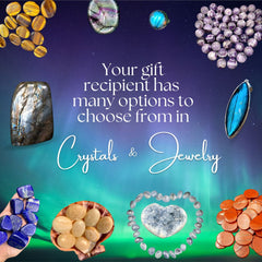 Your gift recipient has many options to choose from in the Crystals, Jewelry and Home Decor collections in the shop.