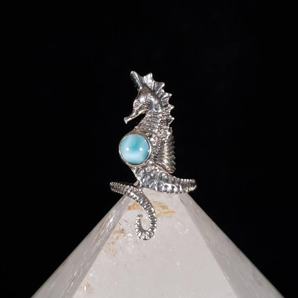 Say hello to your new beautiful genuine Larimar Seahorse Ring!