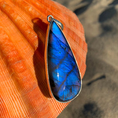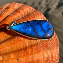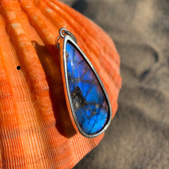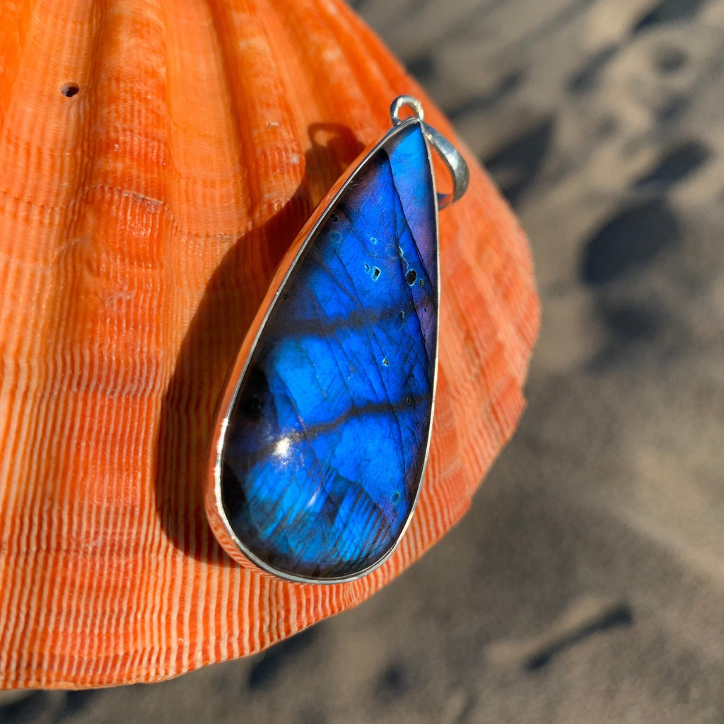 Electric blue Labradorite Crystal Sterling Silver Pendant
